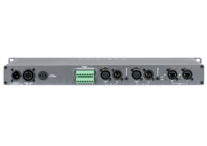 Obsidian黑曜石的RDM10是首创的混合信号分配器。RDM10集成了双DMX输入、10端口RDM分配器、合并器和EtherDMX网关,具备涵盖多种应用的高级功能。是DMX信号分配器与EtherDMX网关集成一体化设备。