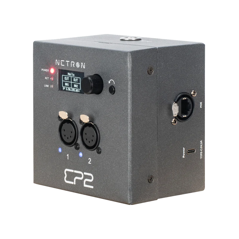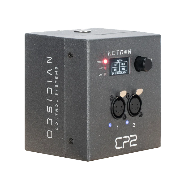 Obsidian黑曜石的EP2是一款紧凑型以太网转 DMX 网关,配备2个RDM 兼容端口,设计用于单联壁挂、桁架安装及独立安装。它可以通过集成的OLED显示屏和编码器,或内置网页进行配置。通过以太网或便捷的USB-C连接供电。EP2是一个强大且便捷的双端口节点,非常适合将sACN和Art-Net流量分发到任何类型的设施或不同舞台位置。